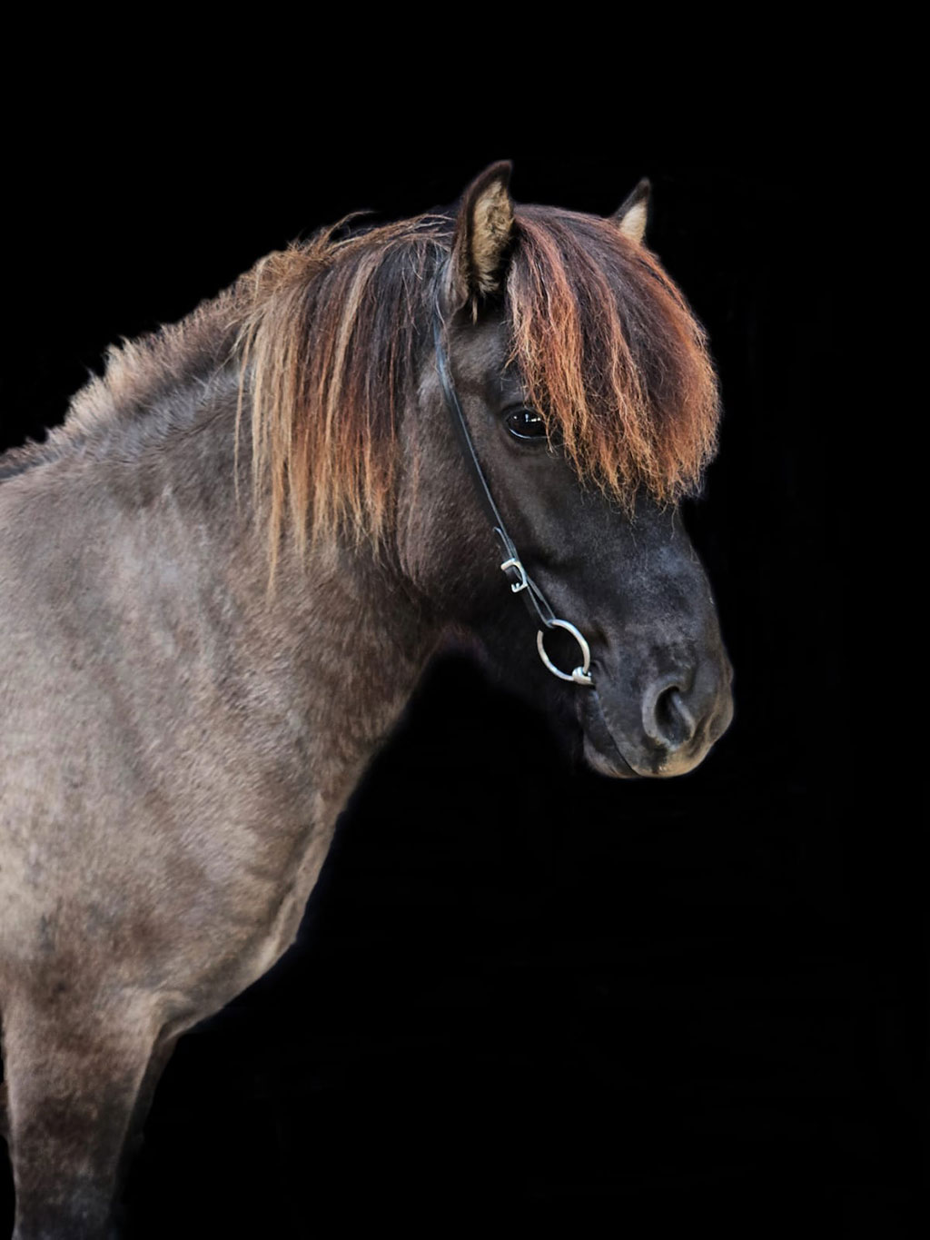 Katla ist seit 2020 in meinem Besitz und hat hier bei mir ihre Karriere als Reitpferd begonnen. Bevor sie zu mir kam, durfte sie auf einer großen Wiese aufwachsen und einfach nur Pony sein. Katla macht ihrem Namen alle Ehre.