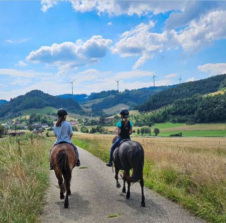 Kindergeburtstage und geführte Ausritte. Sie bietet außerdem noch mobilen Unterricht im Kinzigtal an sowie den Beritt von Pferden.